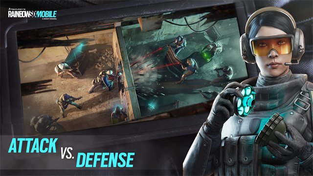 4、策略团队 PvP - 战略和团队合作是《彩虹六号》移动版的成功关键。根据地图、游戏模式、干员、进攻或防守调整你的策略。作为进攻方,部署侦察无人机,倚靠防守阵地,从屋顶速降或突破可破坏的墙壁、地板或天花板。作为防守方,设置所有入口,加固墙壁,并使用间谍相机或陷阱来保卫阵地。利用团队战术和装备获得优势。在准备阶段与你的团队制定策略,部署行动!每回合交替进攻和防守,赢得胜利。你只有一次生命,所以要充分利用它来帮助你的团队取得成功。