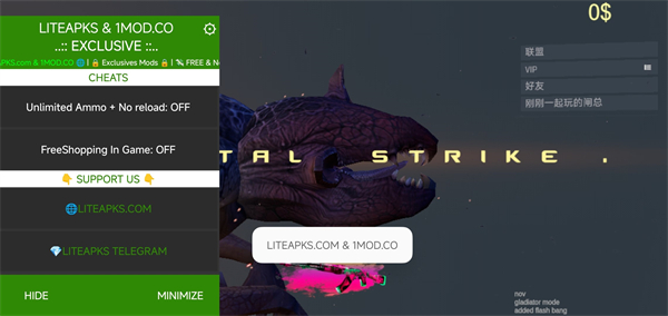 PS:野蛮打击破解版内置菜单MOD,此版本内置MOD菜单,已解锁无限弹药,免费购物、从而减小游戏难度,感兴趣的朋友欢迎前来本站下载体验!
