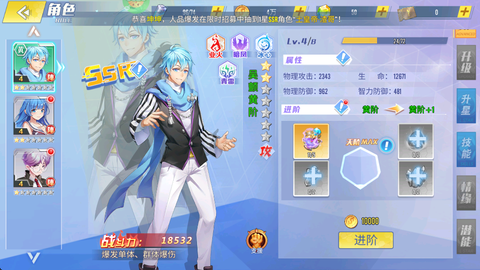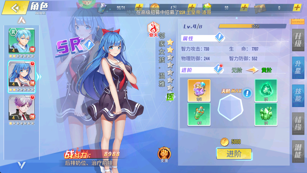 3、创角福利:钻石*8888,SSR偶像歌手·安琪,甜美开局!