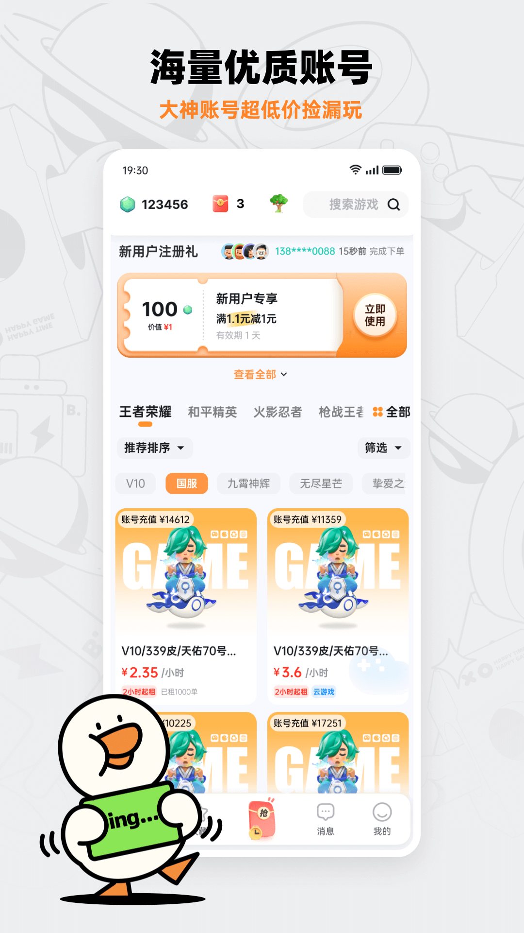 新用户即送登陆大礼包!不到1元即能体验大神号,极品装备带你爽飞;