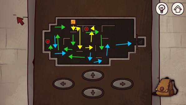 25、点击暗门,暗门的解锁方式类似于推箱子,只不过是一推到底的。需要先经过两个红点,打开终点的铁门,再到达终点即可开门。图片版顺序:黄色,绿色,蓝色