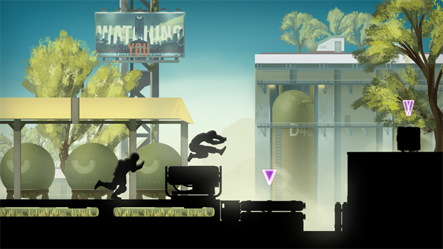 6、游戏将人物弱化成黑色的影子,让你的注意力集中在跑酷上面;