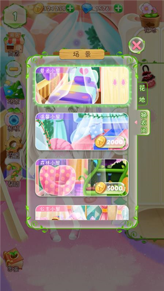 玩家可通过种植花卉,观看广告,完成任务等方式领取金币或钻石用于购买更加梦幻的场景!