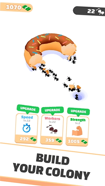 1、你能指引不断发展的蚁群,让他们吞噬大量的小虫子、热狗香肠乃至飞机场;