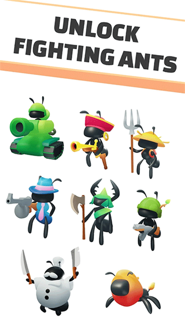 v4.15.1小蚁帝国是一款极具趣味性的休闲养成类游戏,英文名为‘IdleAnts’,它采用了常见的白色为背景基础,搭配上不同的色彩置和各式各样逼真的物体造型,即使是简洁的场景也能为玩家带来舒适的视觉享受。玩家进入游戏后,需要去通过养成不同的蚂蚁来进行蚂蚁帝国的建造,这里的蚂蚁种类非常丰富,例如:蚁后、雄蚁、工蚁、兵蚁……它们的职责都是不一样的,你需要使用不同的蚂蚁来完成不同的挑战任务,不仅能不断的解锁更多的世界,还能解锁上百种食物等,可玩性极高。