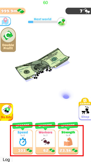 伴随着关卡数量的提升,小蚁帝国游戏后期面对的就不是简单的虫子了,我们将面临的会是更大的食物,由小到大逐步将各种不同类型的食物纳入囊中,分解后拖入自己的树洞里,赚取收益来提升自身的实力,当我们赚钱的金钱足够了,就可以给自己的蚂蚁进行升级,这样蚂蚁的效率也越来越高,消灭一切可以消灭的物品来赚取收益!