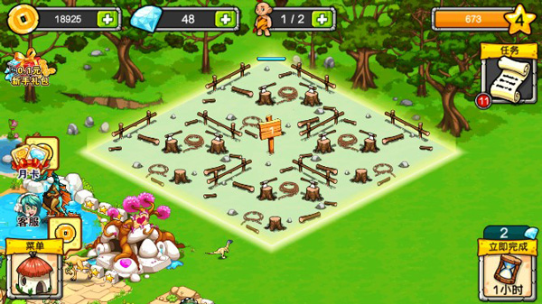 随着等级提升,玩家能够领养的恐龙越来越多,除了各种恐龙巢穴、饲养员住所等基础设施占据土地,想让家园更美、领养更多恐龙,必须扩大庄园扩建领土!在原始森林中,只需要对扩建的地方轻轻点击,使用少数饲养员就可对庄园进行扩建。