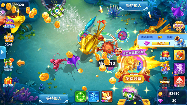4、捕鱼过程中,玩家可不断升级炮台威力或解锁多种技能,捕捉更加轻松愉快,提升你的战绩。