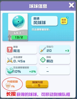 球球升级后,你会获得永久的暴击属性加成,是对所有球球生效的哦!所以千万别忘了升级!