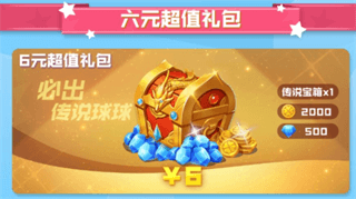 商店中有一款6元超值礼包,内含2000金币、500钻石和1个传说宝箱。