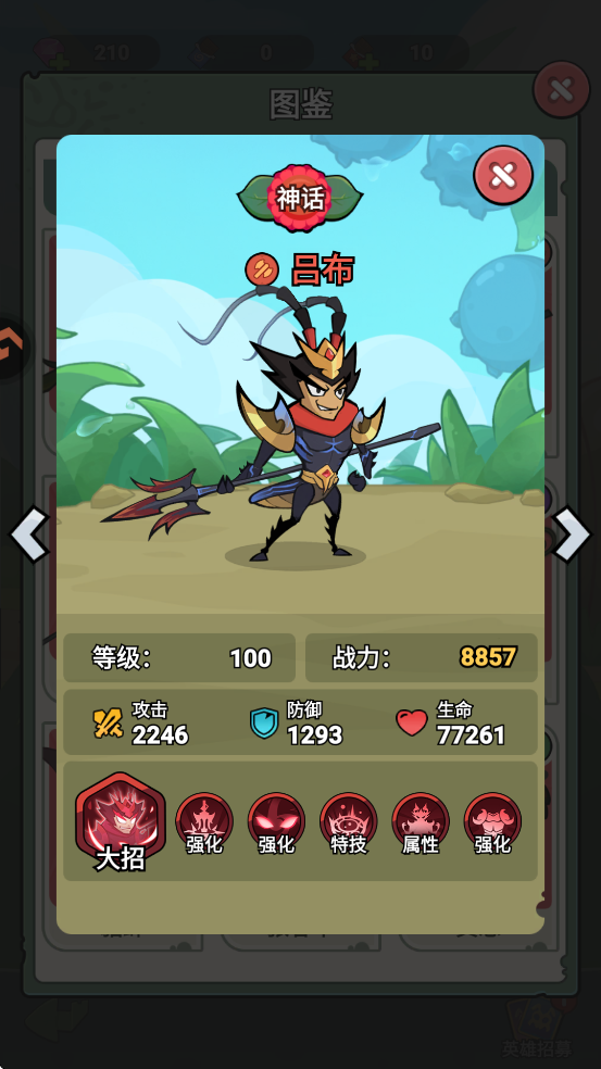 大招:【无双形态】吕布变身为具有远程攻击能力的无双形态,射程+605%,攻击+55%,效果持续6秒