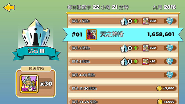 首先要知道A阵容才是竞技场的防守阵容(由系统操作),可以根据自己的卡片来,我的建议是要有刺客虫或者侠盗之一来绕后杀后排,前排可以玩人海或者面板肉盾,塔的选择是越恶心越好,让别人没法刷分,竞技场如何拿高分,要看运气和对面阵容,运气真的很重要(绿色的球)不然没法高分,等级最高100级,竞技场最高钻石1(也有赛季的),钻石2升钻石1需要95万+分比较保险,我一直都是第一升上去的,这个是半夜打的,用主教刷出来的。