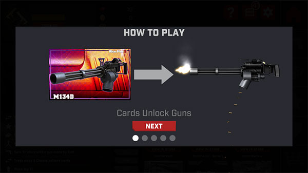 1、从本站下载真实枪械2官方最新版,进入游戏开始有新手教程,使用卡片即可解锁目标枪支。