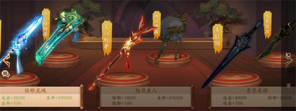 由于青釭剑和七星宝刀获得不易,所以这里推荐普通玩家可以先不升星这两件神兵,充值玩家可以优先选择,这两件神兵在属性和技能上十分强悍,青釭剑在“横扫千军”中可以换取,而七星宝刀只能在多出充值活动中可以获得。