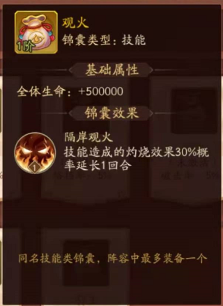 武将锦囊的八个格子,足够玩家对不同的武将搭配最适合的锦囊。但是其中需要注意的几点,拿出来单独说。游戏中不存在只有哪个武将可以使用什么锦囊,而是追求自己阵容的利益最大化,合理搭配即可。比如最突出的就是观火,这个锦囊可能除了吴国玩家,并没有太多的玩家会选择。但是对于太史慈和鲁肃来说,观火的存在无疑是锦上添花,为太史慈的高爆发与吴国的伤害再添一把柴。