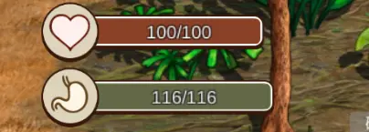 每一个村民的饥饿值最大在100,可以通过吃果实或者鸟蛋来提高最大值。