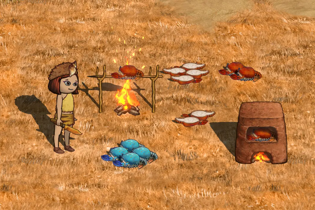 在选择好建家位置后,便可以进入下一步生存环节——生火。在村落人生里,火也是非常重要的,对于烹饪食物、炼铁、烧水、放烟花棒等等都需要用到火。同时,火还可以吓走危险动物保护自己!