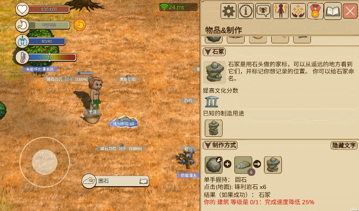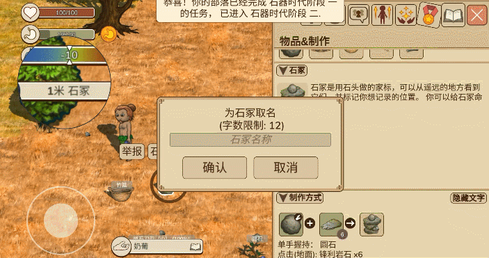 当村民们能够维持饱腹,并且熟悉操作,可以在部落内基础生存下去后,可以为自己建立一个小范围的家园圈了!石冢需要在科技树-石器时代一-第4层解锁。