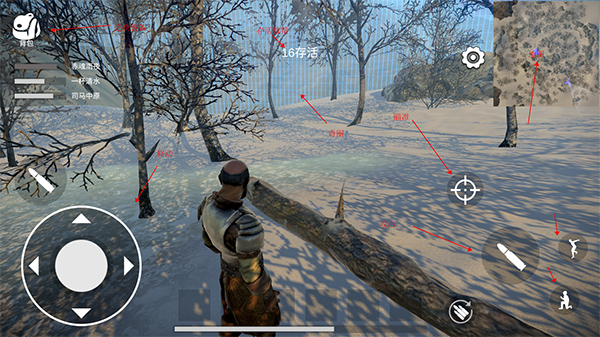 2、等待系统匹配玩家后进入战场,左侧虚拟摇杆用于操控角色移动,右侧则分布着瞄准、攻击、跳跃等功能键;