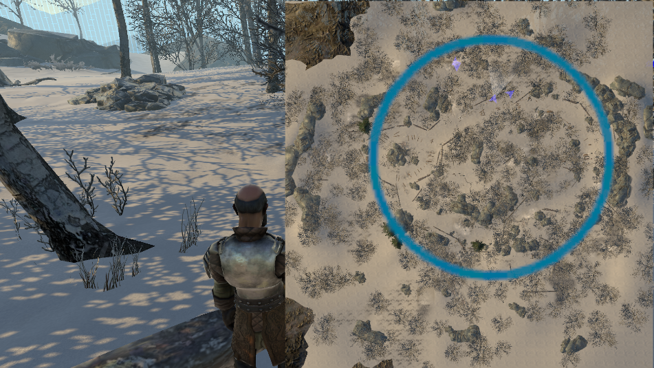 3、点击右上角的地图图标,可查看自身所在位置与战场分布;