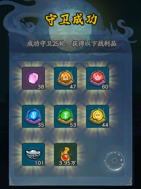 掉落物:中量人物经验,中量妖兽经验,功法袋(功法残页用于修复窥天碑和通天塔的功法和秘术,提高下限),灵石袋。