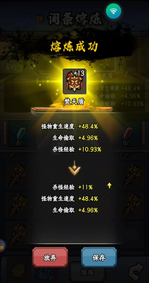 接下来留存的装备紫装,金装有用武之地了。开了第三词条后,把自己积攒的低数值所需词条装备(优先紫装)熔进主装备,此操作我称为开门(一是因为熔词条不是百分百成功。二是熔词条未必会如你所愿正好顶掉你不想要的那个词条,因此低数值词条开门,同类型高数值词条覆盖就能省很多材料,也不浪费好不容易炼出的高数值词条),低数值词条正好顶掉自己想要替换的词条,则保存,没顶掉想要替换的词条则取消,消耗一件低数值材料,返还分解材料,继续下一件熔炼。顶替词条,似乎有规律可循,如主装备为三词条装,每一件材料装顶替时是从上到下依次有序变换,假设主装备词条为:经验,移速,重生。如这次熔炼时顶替的是经验,那么下次则是移速,在下次则是重生。此顺序最好是一次性完成,中途不要进行其他装备的熔炼操作,以免打断这次定位的顺序。因此可以消耗无用紫装进行词条定位,定位时机成熟则换所需低数值词条装备往主装备熔炼替换主装备不要的词条。上面所述中不论紫装,金装还有个作用,在后期装备词条都打满的情况下,各位势必要追求更高更极限的数值。紫装低数值所需词条熔炼进无用金装里(阶级晋升),用此金装再熔炼进主装备,进行低数值提升高数值词条,虽然提升很小很小,但总是聊胜于无。也可以紫色熔紫色,把数值接近满的提升到满值再覆盖主装备词条。