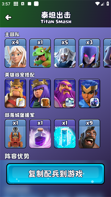 双服同步!我们精挑细选了近两千个国服、国际服阵形,并手动制作了该阵形在另一服务器的阵形链接!护资源、冲杯、部落战、创意、升级阵形应有尽有!