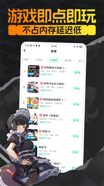打造了一个全新的游戏新玩法,不用下载,直接手机在线玩,更省内存。