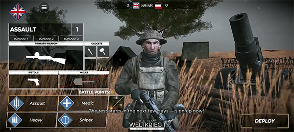 v179一战火灾风暴国际版是一款以第一次世界大战为背景的移动射击游戏,专为手机玩家打造。游戏不仅以复古风格的3D画面精细再现了一战时期的战场氛围、武器与装备,更从经典射击作品中汲取灵感,设计了突击、医疗、狙击等多类职业,每类职业都拥有独特的技能与战斗定位,强调团队配合与战术策略。游戏针对移动设备进行全面优化,操作流畅直观,并融入阵营选择、武器切换、地形利用等丰富机制,在提供沉浸式单兵体验的同时,也格外注重团队协作与战场适应性,让玩家在掌上即可感受历史战役的激烈与深度。