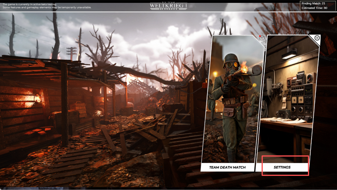 1、打开一战火灾风暴国际版手游,点击【SETTINGS】进入设置