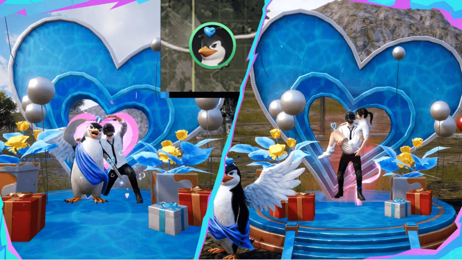 ●丘比特企鹅(普通):对局一段时间后,地图上会更新丘比特企鹅合照点,可以与好友一同前往,在企鹅的见证下合影留念;如果单人去,企鹅都会贴心与你单独合照!完成合照后还可获得物资奖励。