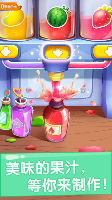 宝宝果汁商店最新版是宝宝巴士出品的早教游戏,可以很好地锻炼宝宝的大脑思维能力,动手能力。比如游戏中有种类丰富的果汁需要宝宝去榨取,还有不同的装果汁的容器要小朋友自己手工diy,可以让宝宝发挥自己的创造力。还有创意灌装机,创造不同口味和颜色……各种神奇的机器等宝宝操作,点一点,按一按,转一转,原来制作果汁也可以很简单!宝宝巴士以孩子的兴趣启蒙为出发点,从健康、语言、社会、科学、艺术五大领域关注幼儿成长,宝妈奶爸们可以下载一个,宝宝绝对会喜欢的。