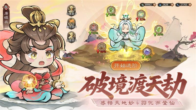 单个弟子拥有“2固定职业技能+1弟子专属技能+2功法技能+1法宝技能”的技能配置。配合学习藏经阁超60种功法种类及弟子自己炼化的法宝,在丰富的策略组合中实现越级挑战。