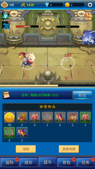 世界首领可以获得大量装备,补充装备后,提升一波战力,继续挑战万妖塔。