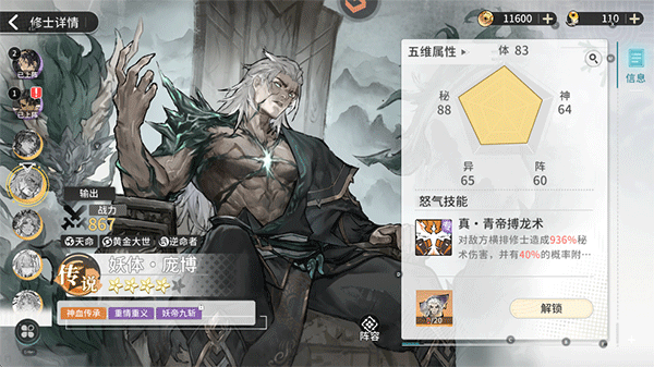 2、庞博具有强大的上古妖神血脉,适用于各种高难度的推图。