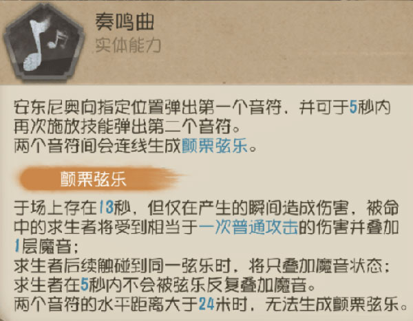 【颤栗音符】命中求生者不会对其造成伤害,但是可以对其叠加一层魔音状态;