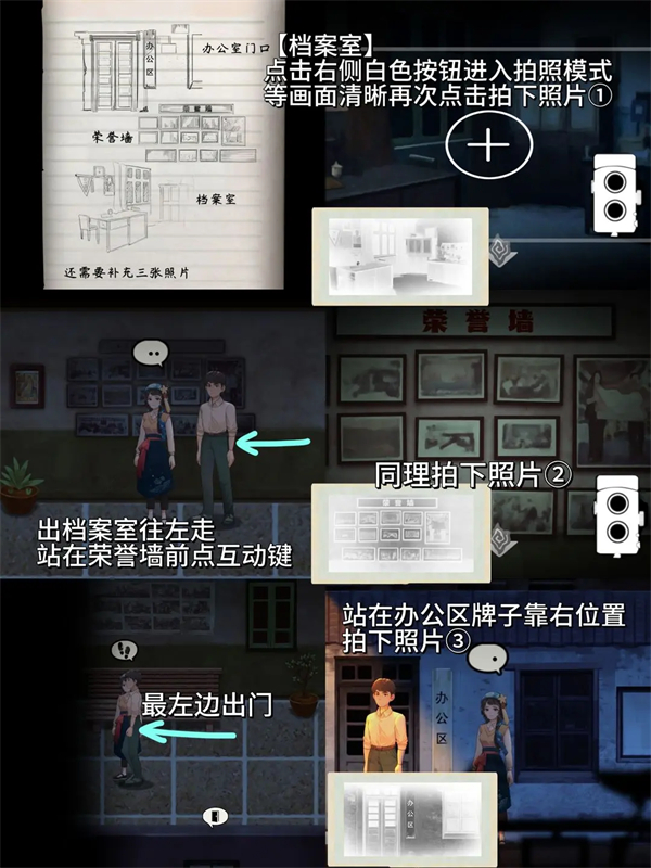 4、出影院进办公区,借黑板线索解档案室密码,获取相机和相框道具