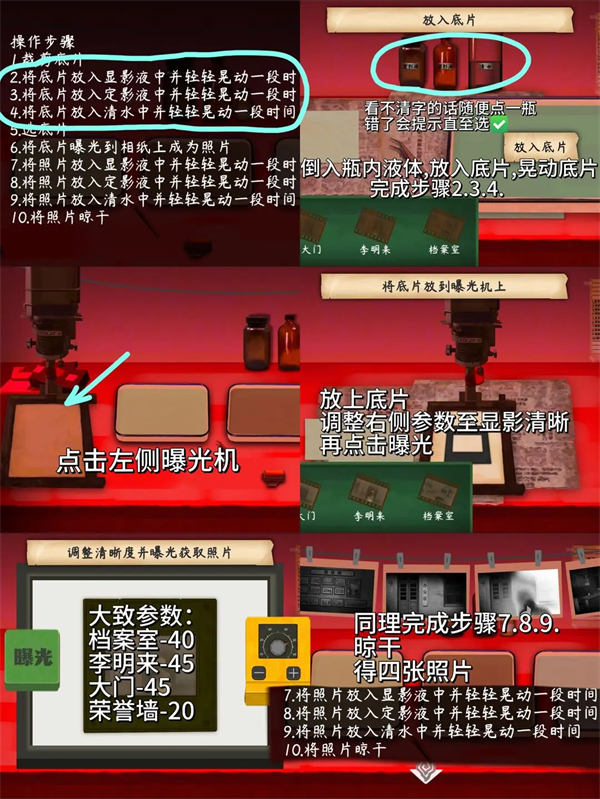 7、继续暗室操作,完成底片曝光、照片冲洗全流程,获取四张照片