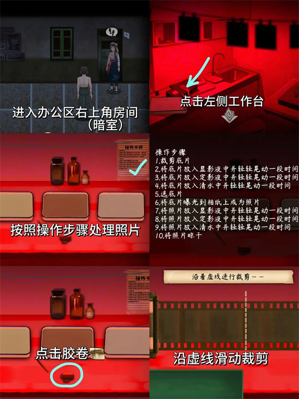 6、进入办公区暗室,依据步骤处理照片,裁剪胶卷、操作显影定影等流程