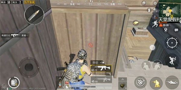 4、天堂度假村一般来说信号接收区还不错,不是太需要关心跑圈的问题,在我们的落点大仓前面就是一个刷车点,需要转移我们也可以原路返回,也非常的近非常方便。