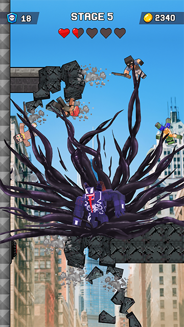 2、玩家需要通过屏幕点击或滑动,控制毒液在关卡平台间移动,并精准攻击敌人。