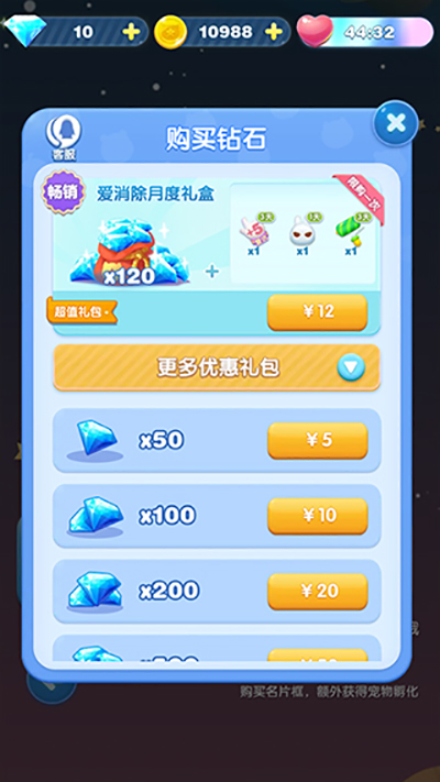 梦境之旅中,风格百变的萌系宠物是你的强大助力。享受宠物的陪伴,活用宠物的技能来过关吧!幸运的消除师们或许能吸引到承载月光之力的强大月亮宠哦!