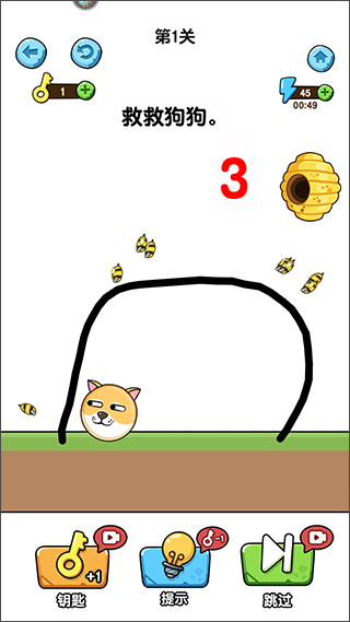 3、第三关画个三角形围住狗狗也就可以过关了。