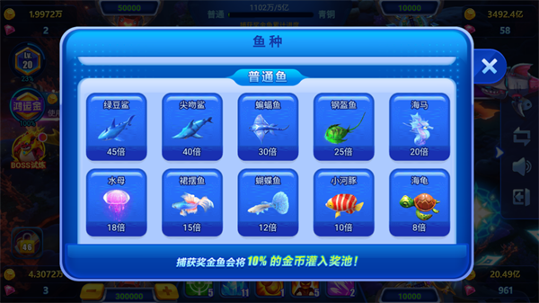 波克城市捕鱼达人千炮版鱼类介绍