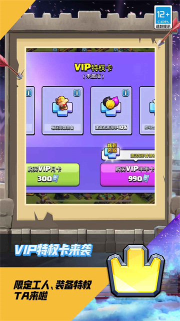 v18.101.2部落冲突是一款享誉全球的模拟塔防策略手游,开创了COC游戏品类,至今运营超过十年,得到无数玩家好评,并保持超高人气。这款游戏吸收了即时战略和塔防的游戏特点,主要是建造房屋和炮塔、收集资源、训练士兵和连网对战。游戏将战略规划和快节奏对战融为一体,在和平时期你要安心发展自己的基地,组建一支由野蛮人、法师、飞龙和其他神力战士组成的军队,发展好了你就可以派你的军队去征战四方抢夺资源,同时你还需要建造牢不可破的防御工事以抵挡其他玩家的掠夺。玩家一开始只有“建筑工人小屋”及各一座等级1的“大本营”、“金矿”、“兵营”以及各750点的“圣水”和“金币”,若玩家是第一次进入游戏,系统则会进入引导模式让玩家了解此游戏的建造、升级、提速及解锁的方式。而后面通过经营自己的村庄,玩家可逐渐强大兵力,由单人模式转至多人模式,进而与成千上万的玩家进行战斗。