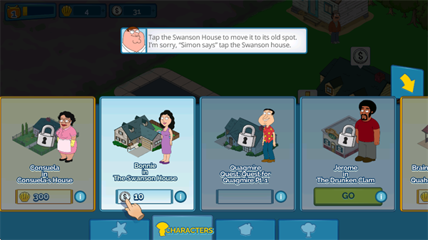 恶搞之家游戏玩法简单且富有趣味,玩家只需点击人物角色,任务便会自动展示,任务内容包括重建房屋、为孩子买裤子、帮助邻居等轻松搞笑的日常事务,随着剧情发展,更多的任务和冒险将陆续解锁,保证玩家的游戏体验不枯燥。恶搞之家手游融合了剧情冒险与招募系统,适合喜爱恶搞和轻松娱乐的玩家,带来了一场不可错过的恶搞游戏之旅。