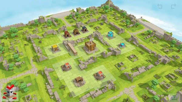 1、点击家园左下角第一个图标可以修改和巩固城堡的防护措施,调整城堡及城堡周围建筑的位置。修改好以后点击两次右下角图标就可以保存修改并回到家园。