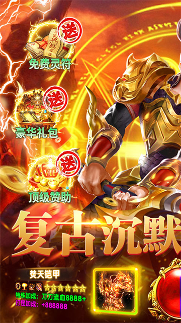 乱世无双(复古沉默高爆版)是一款复古题材的传奇游戏,游戏特色是游戏内战士/法师/道士可觉醒相应的职业,共八种职业可选,登录送648充值卡可激活线上每日累充和永久累充活动,创角送自动回收/拾取、群雷术。绝版称号和大量元宝,打怪掉落实物道具可无上限兑换大量灵符,传奇玩法自由度高,福利满满;线上更有超多不同的活动玩法供你获取资源;白嫖也能变大佬。