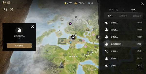 如果灵芝对于选择的武器不满意或者误选了某个武器,可以前往武器商人处重新购买武器。点击界面左上角打开地图,选择【半月湖】地区,再点击【目标】,即可找到初级武器商人。