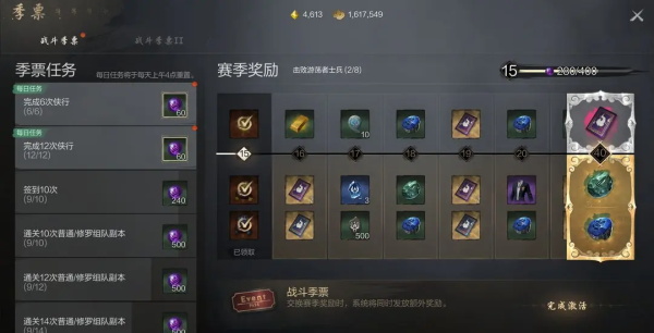 季票是游戏中获得额外资源的途径之一,每提升1级,都可以获得丰厚奖励。完成季票每日任务可以获得季票经验值,从而加快季票的升级速度,更快地获取季票资源。